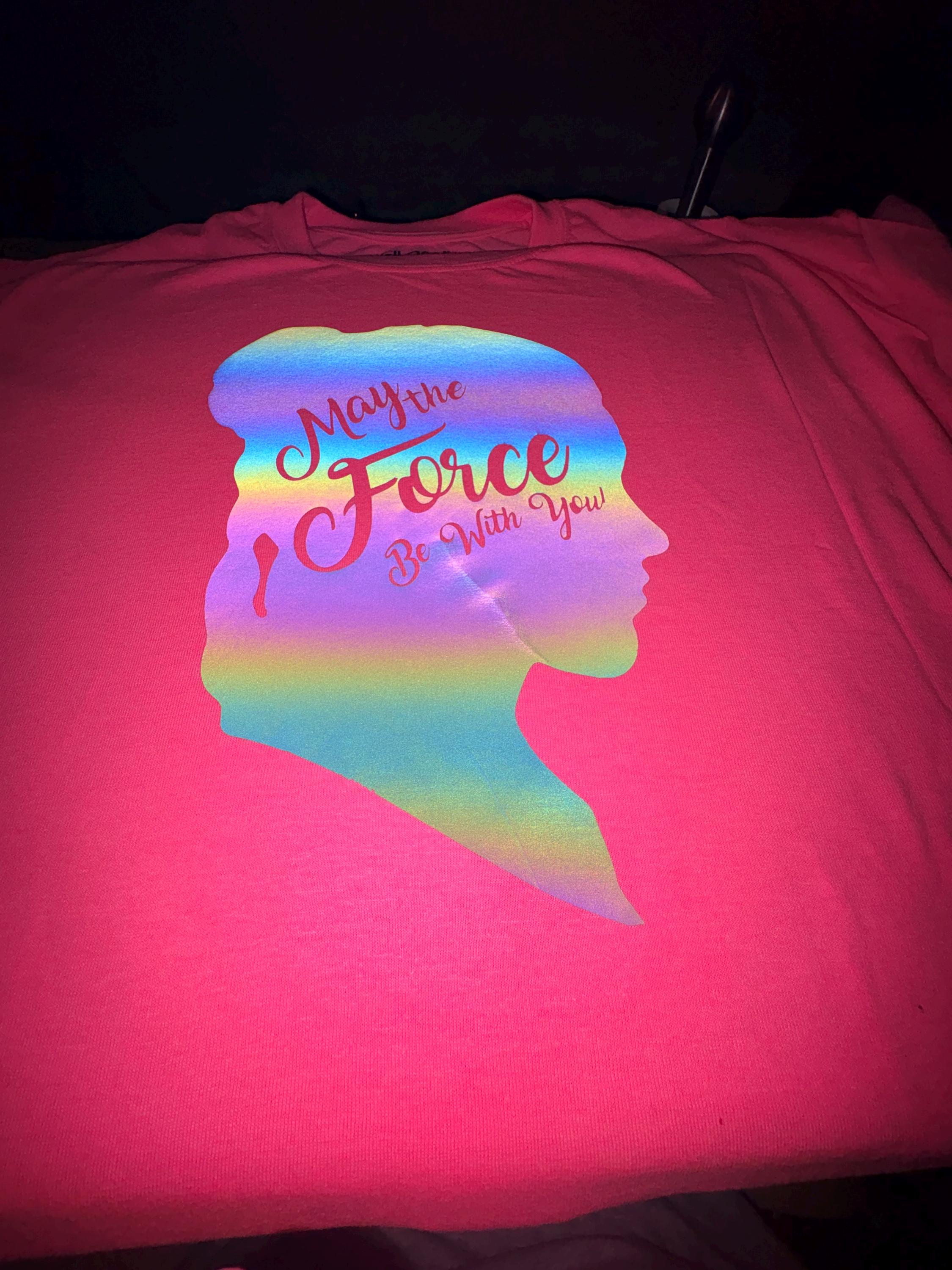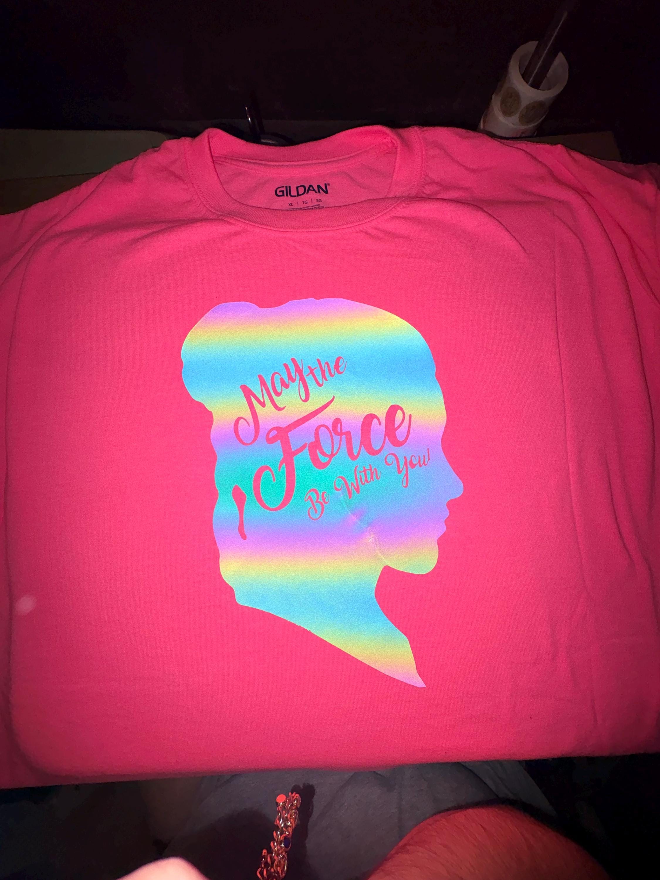 Princess Leia rainbow reflective design can be placed on any color tee