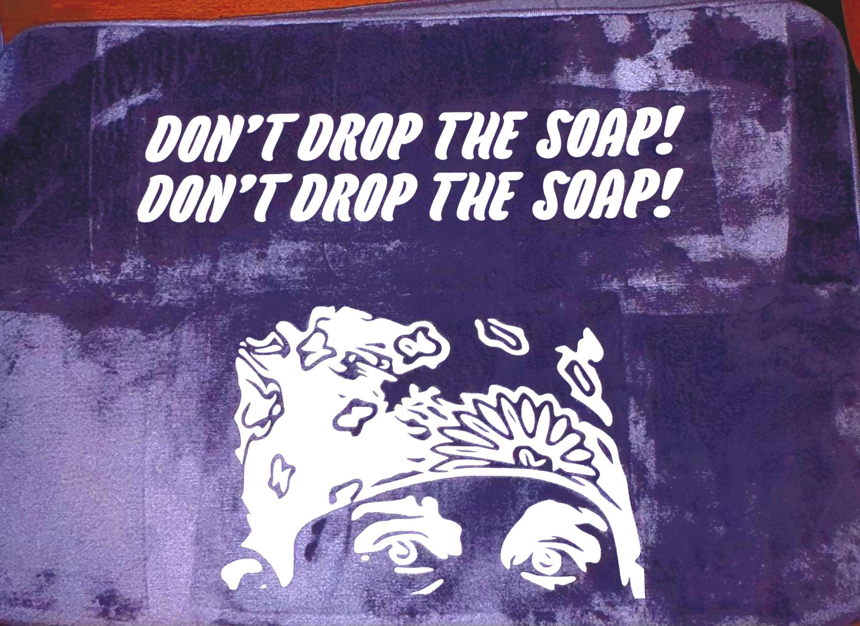 The office “don’t drop the soap “ prison Mike quote on a memory foam bath mat.