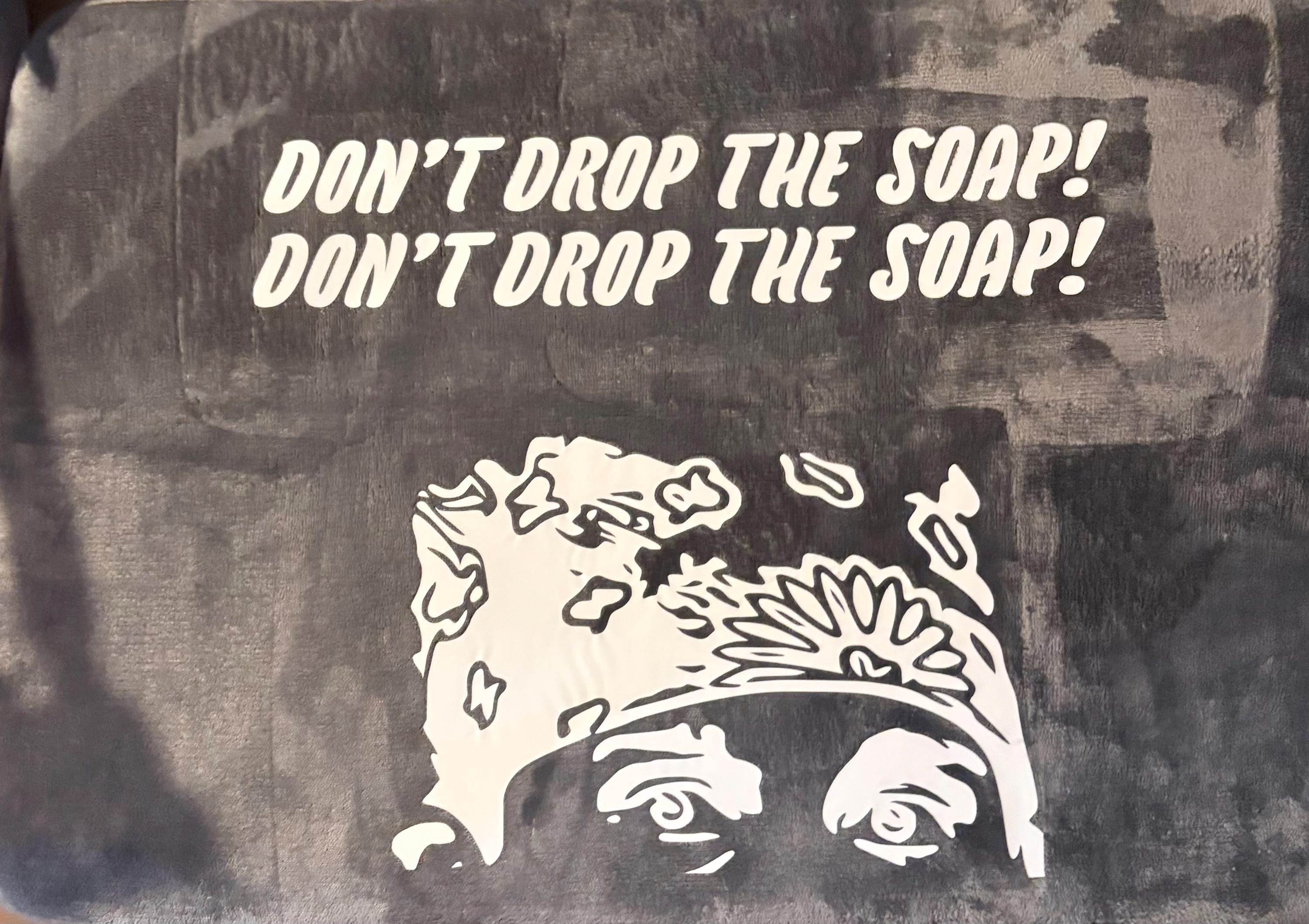 The office “don’t drop the soap “ prison Mike quote on a memory foam bath mat. if you’d like a color of text or rug not listed simply message and I’ll make it happen!
