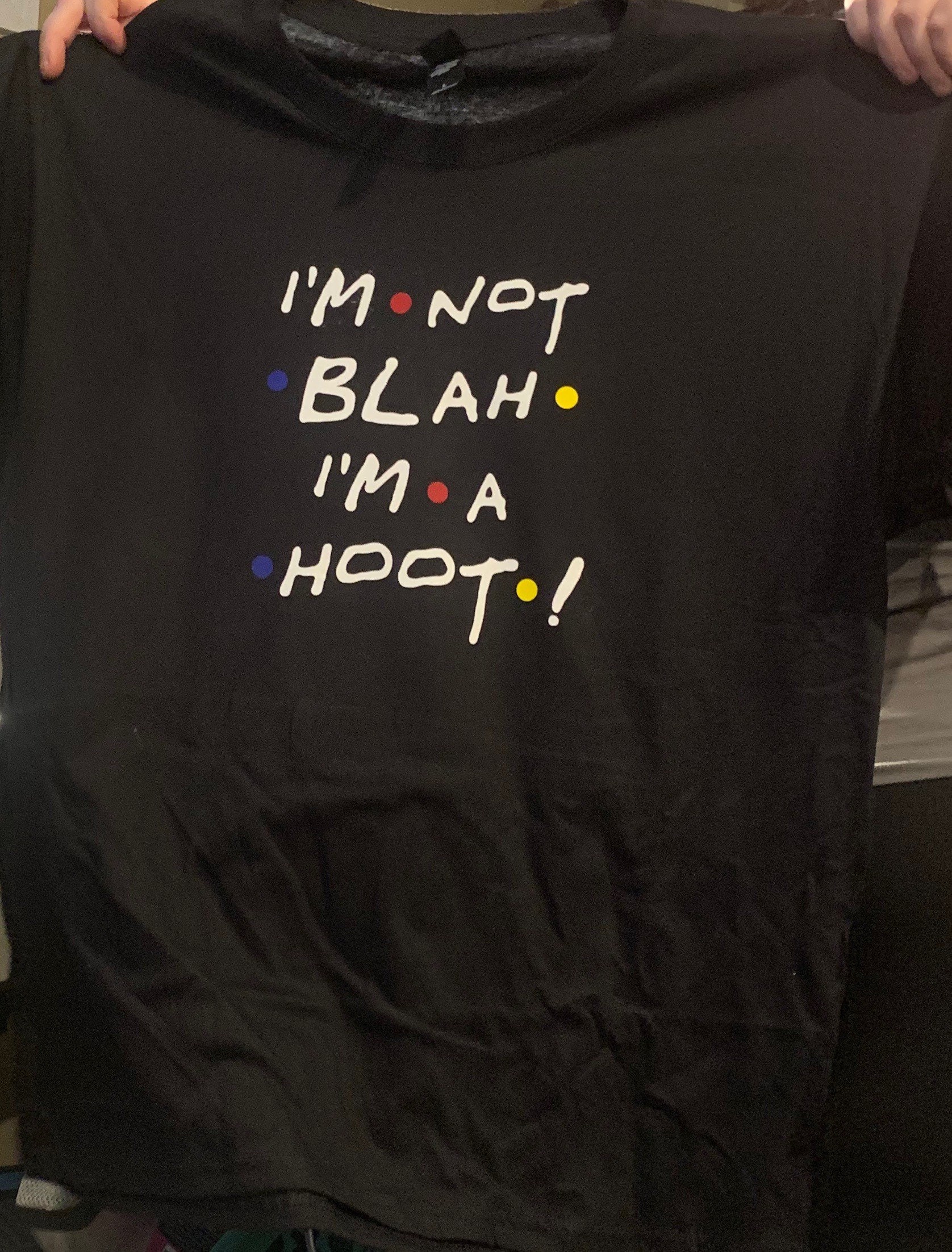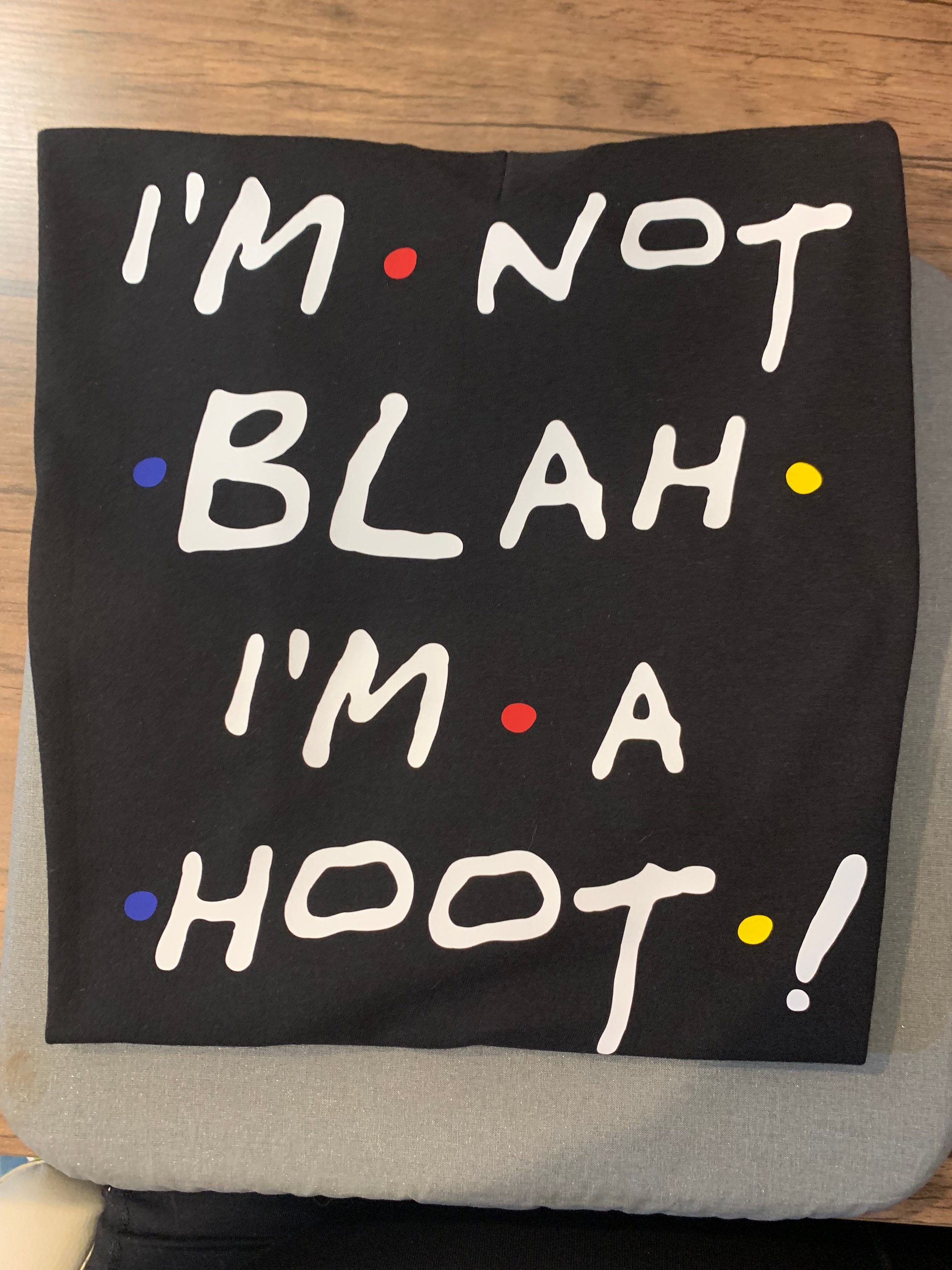 Friends- chandler bing “I’m not blah I’m a hoot!” Quote tee (Can be made on any color tee desired)